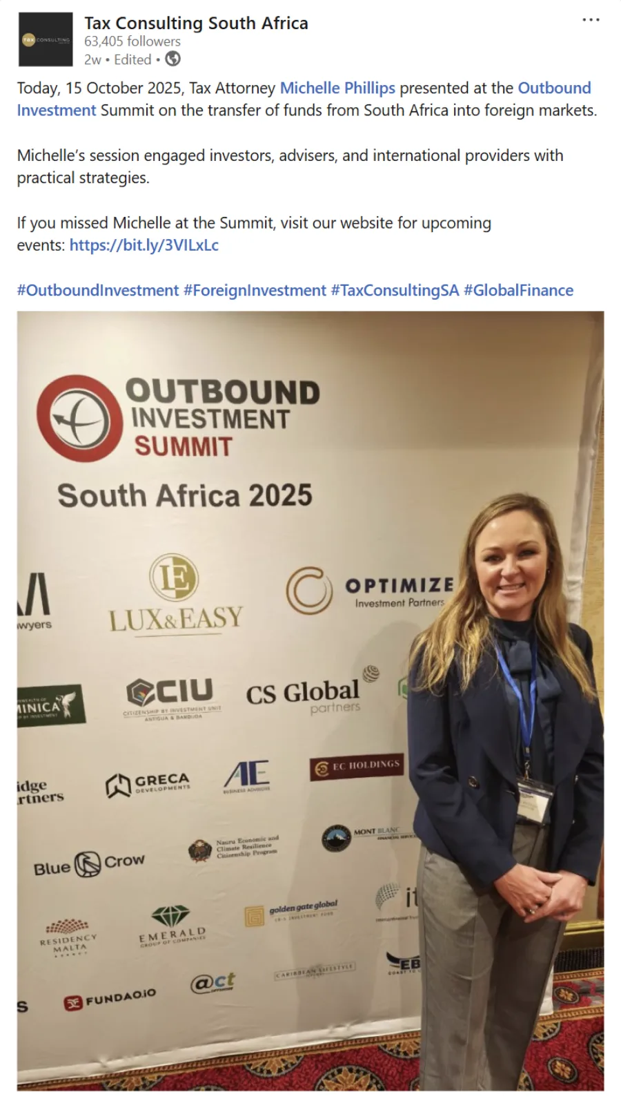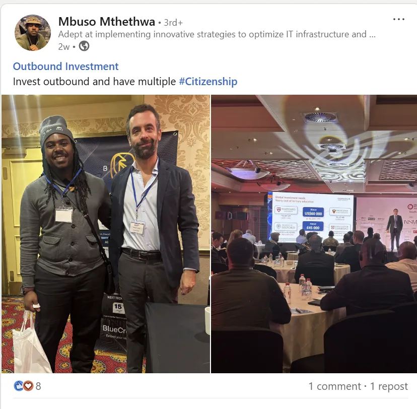 Join us on October 17th in Cape Town for the Outbound Investment Summit, an exclusive gathering designed for professionals across various industries, including finance, immigration, wealth management, consulting, legal, real estate, and more. This summit offers a unique opportunity to:
