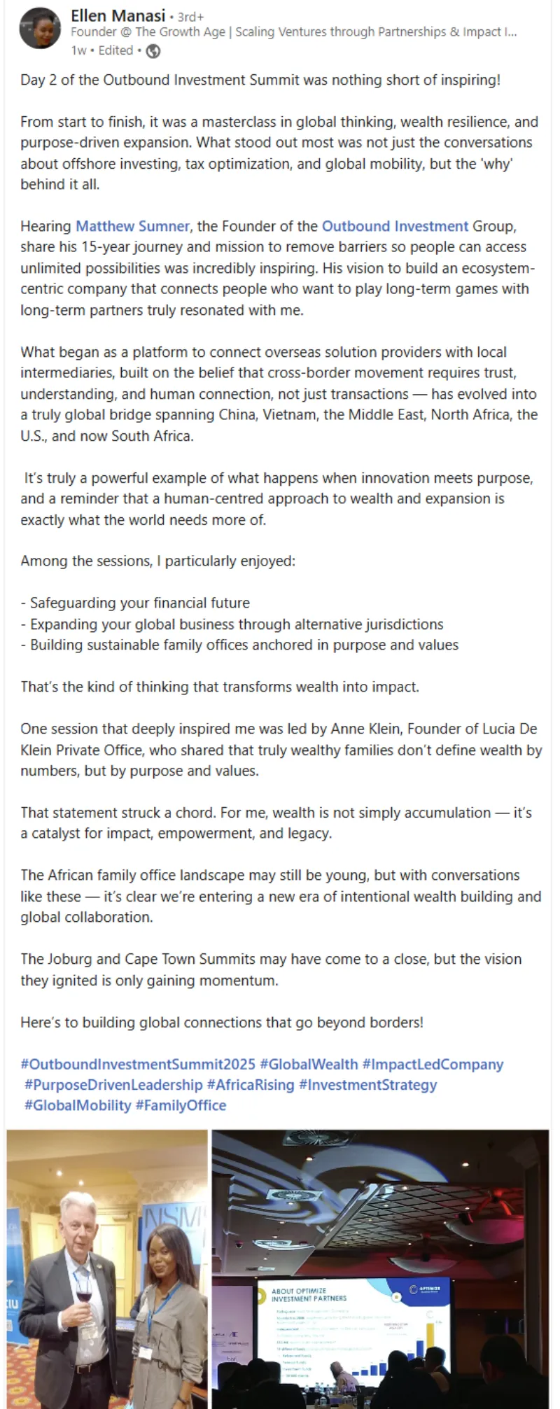 Are you considering attending the Outbound Investment Summit 2025 – Cape Town ? If you are in any of the professions or industries listed below, this annual event is an opportunity you should not miss.